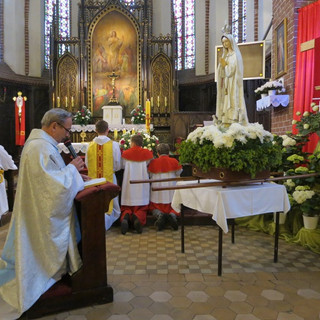 W sobotę – w 100 rocznicę Objawień Fatimskich – w naszej wspólnocie parafialnej przeżywaliśmy wprowadzenie relikwii I stopnia św. Jana Pawła II. Uroczystej Mszy św. koncelebrowanej przewodniczył i wygłosił Słowo Boże ks. kan. Czesław Dobrowolski. Uroczystość zakończyła się ucałowaniem relikwii św. Jana Pawła II przez kapłanów, służbę liturgiczną i wiernych.